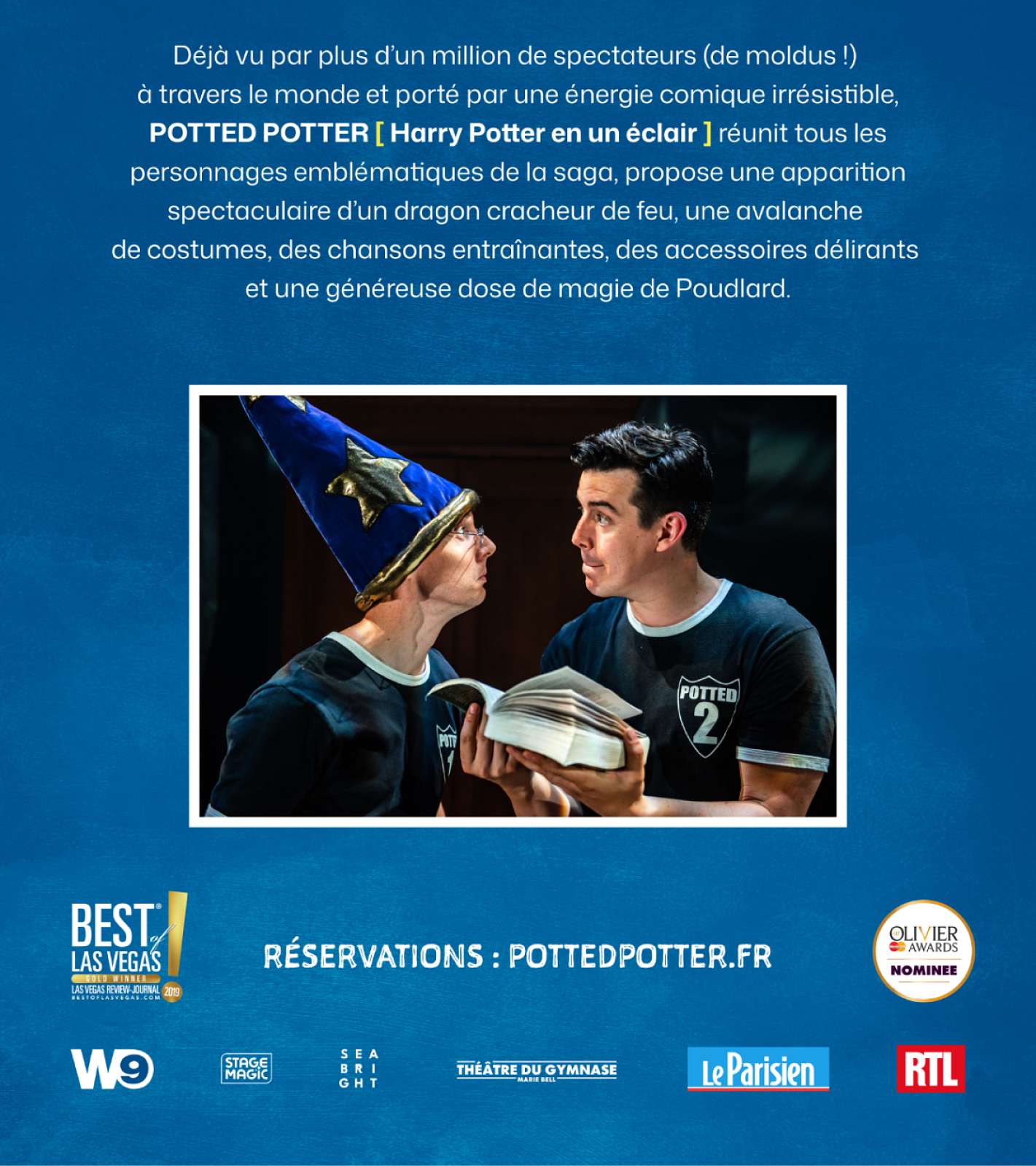 ![Potted Potter [Harry Potter en un éclair]](https://stagemagic.fr/storage/app/resources/resize/400_280_0_0_crop/img_8ac6f060014e3575f064b5a3050ada84.jpg)